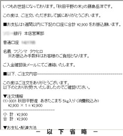 お振込み先メール例