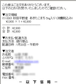 注文内容を確認するメール(自動返信)例
