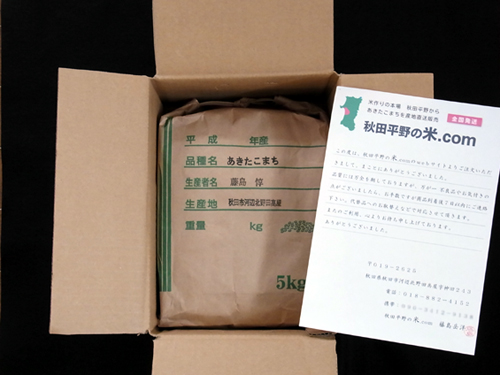 −精米したての「あきたこまち」に伝票を付けて発送します−