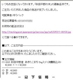 発送完了メール例